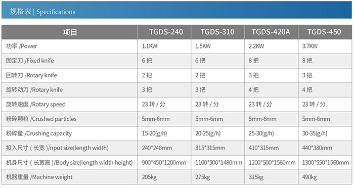 我们优质的粉碎,离不开使用的刀具 , 所有的刀具都是采用日本进口 SKD—11 材质,坚固耐用破碎更彻底。
