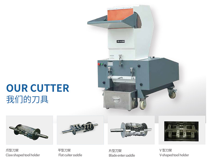 The structure of blade cutter is between claw cutter and flat cutter, which is suitable for crushing ordinary sheet, pipe, profile, plate and packaging materials and other plastic products and gate. General plastic crusher, using sealed bearing, so that the bearing rotation for a long time to keep good; Reasonable cutter design, uniform product particles; Knife block heat shrinkable treatment, beautiful appearance design.